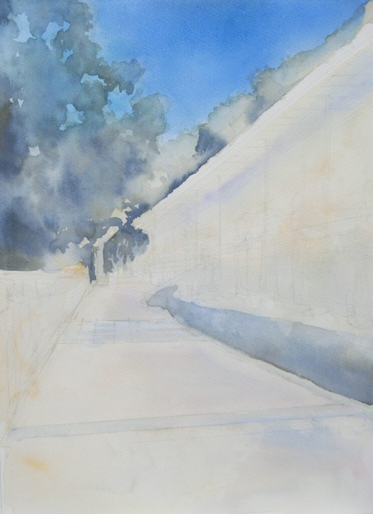 早朝の長い影が特徴的なのでこれを表現してみます。